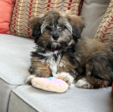 Cash is our Havanese stud. He is the sweetest little guy. He is full of happy energy, and his bouncy little personality shines through!